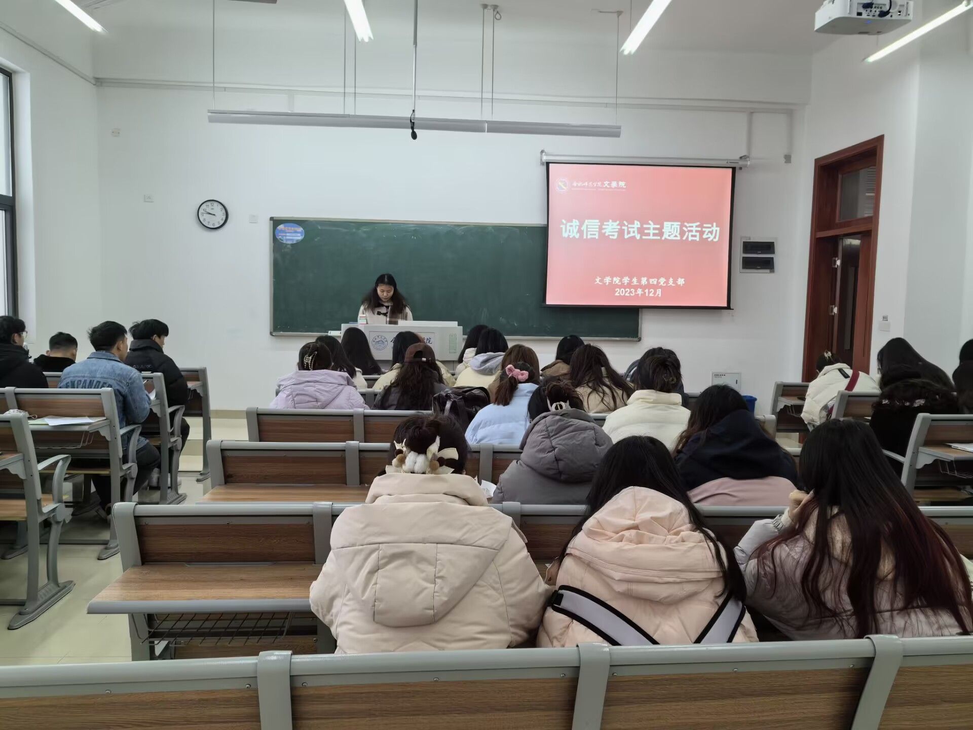 党支部书记带领党员、入党积极分子学习《合肥师范学院学生考试违规处理办法》的相关规定,提出自觉遵守考场纪律,坚决杜绝作弊行为的要求,做到认真备考、诚信应考。党员代表宣读诚信考试倡议书,倡议党员要以身作则,带头弘扬诚信正义,做一名合格的大学生党员,并把诚信考试的要求传递给所在班级同学,将诚实守信的理念内化于心,外化于行。