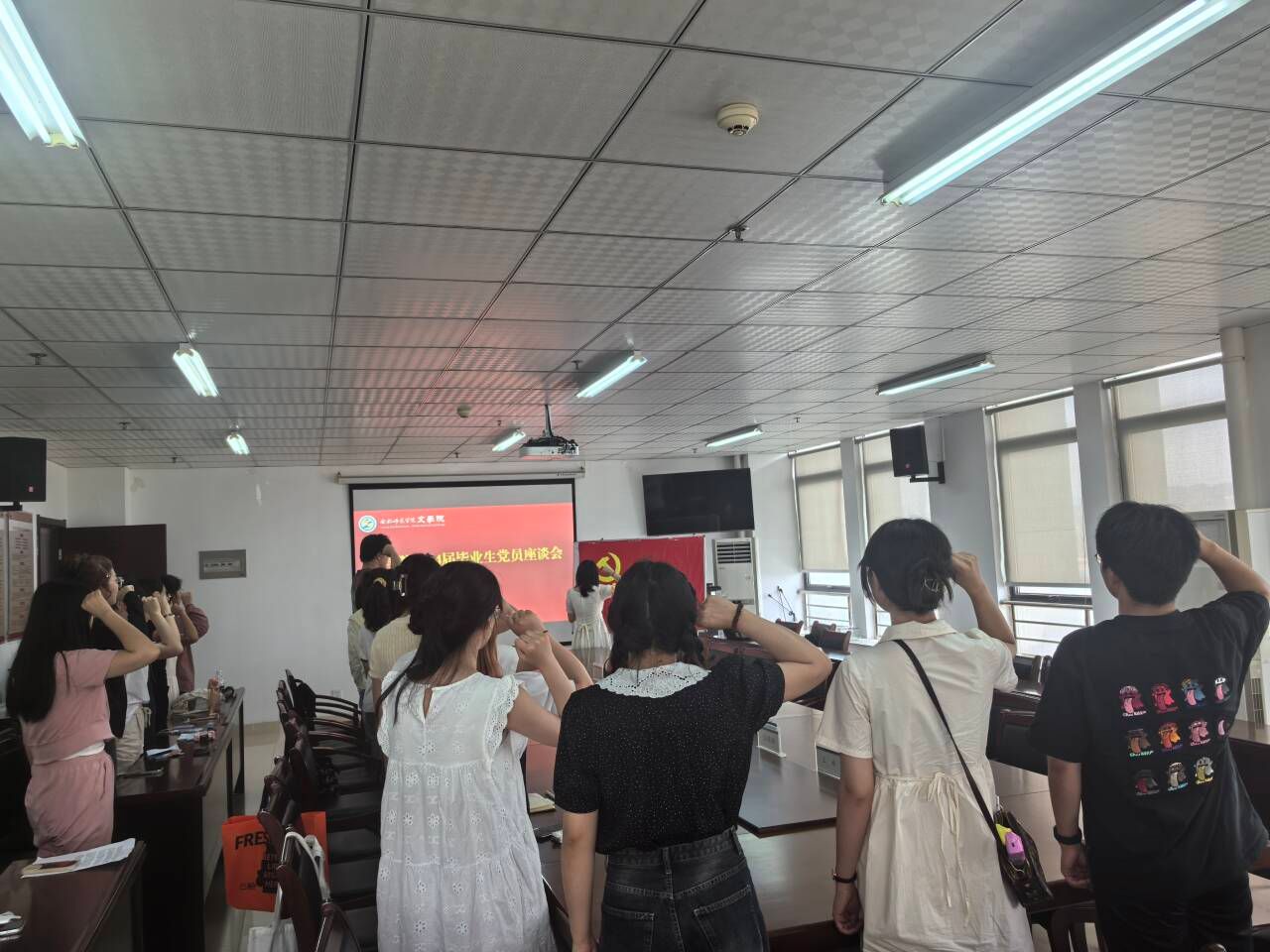 座谈会结束后,与会全体党员重温入党誓词,铭初心、感党恩。(今年会官网:疏淑进)