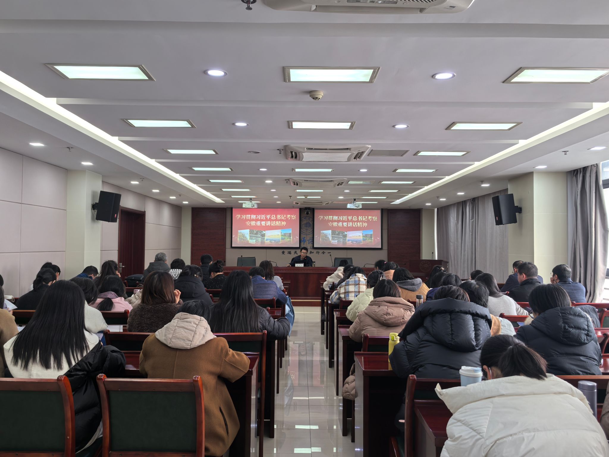 宣讲中,徐文林紧紧围绕“充分认识习近平总书记考察安徽重要讲话的重大意义”“深刻领会习近平总书记考察安徽重要讲话精神的丰富内涵”“切实推动习近平总书记考察安徽重要讲话精神落地生根”等三个方面,结合高等教育和学院实际,对习近平总书记考察安徽重要讲话精神进行了全面阐述和深入解读。他强调,要深刻认识习近平总书记考察安徽的重大政治意义、理论意义、实践意义,坚持深学细悟、整体融会贯通,切实将学习成效凝聚成干事创业、提升教科研能力和育人水平的强大合力,奋力完成全年各项工作任务,为学院高质量发展作出更大贡献。