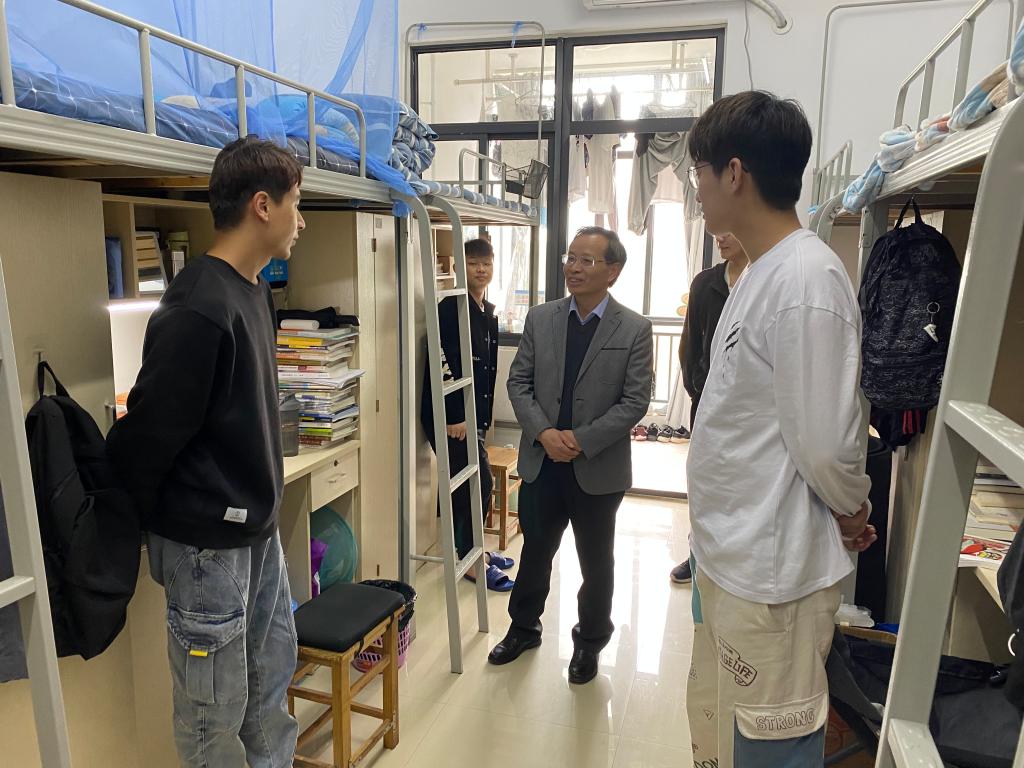 走访中,院领导、辅导员仔细查看学生宿舍的生活设施、清洁卫生、以及用电安全等方面的情况,反复叮嘱学生要增强安全防范意识,保持通风,加强疾病预防,合理安排时间,认真学习,积极参加实践活动,营造积极健康的宿舍文化。在于与学生们进行亲切的交流和沟通中,院领导、辅导员叮嘱广大学子在住宿期间,处理好与室友的关系,共同打造温馨向上,和谐团结的宿舍氛围。