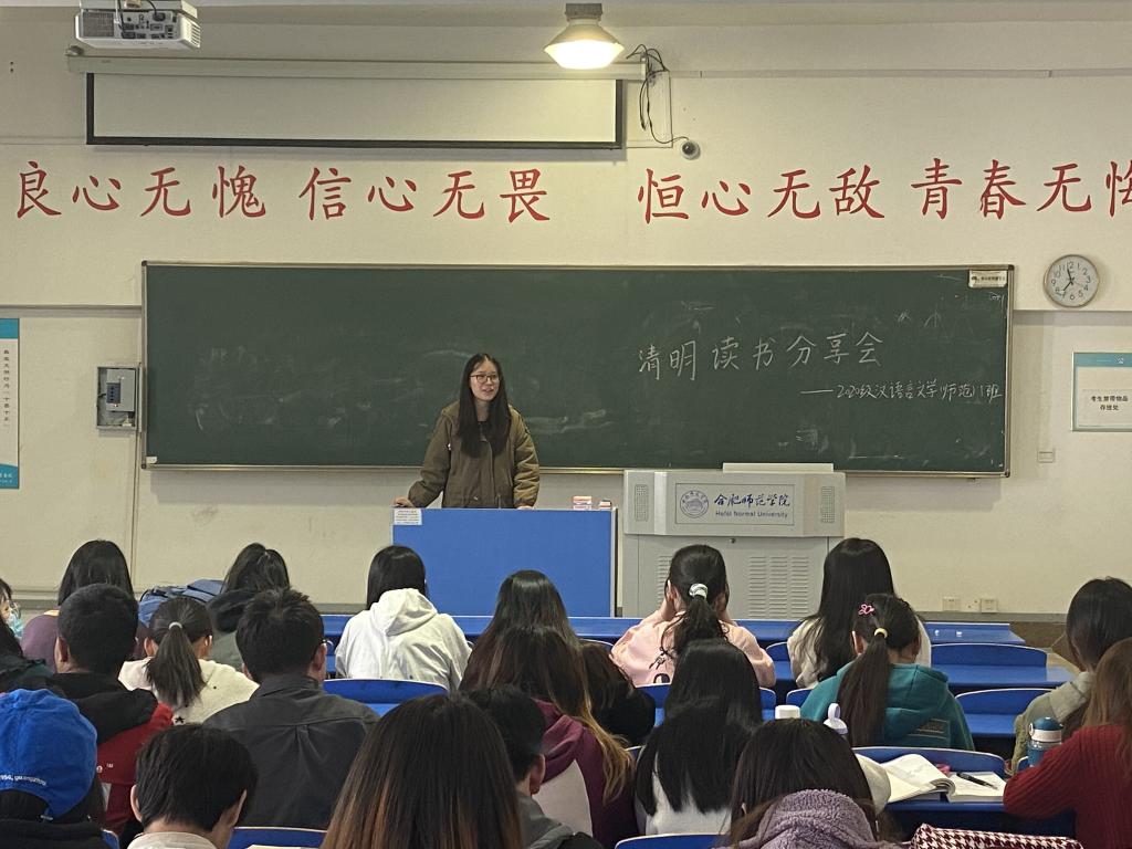4月5日上午,2020级汉语言文学(师范)专业在逸夫楼A107开展了班级活动——清明读书分享会。同学们纷纷进行了读书经验交流分享。分享了如《包法利夫人》《围城》《庄子》《白鹿原》等古今中外一系列优秀文学作品,以精彩独到的见解,述说书中故事,畅谈人生理想,充分展现了属于汉语言文学专业学生的风采。