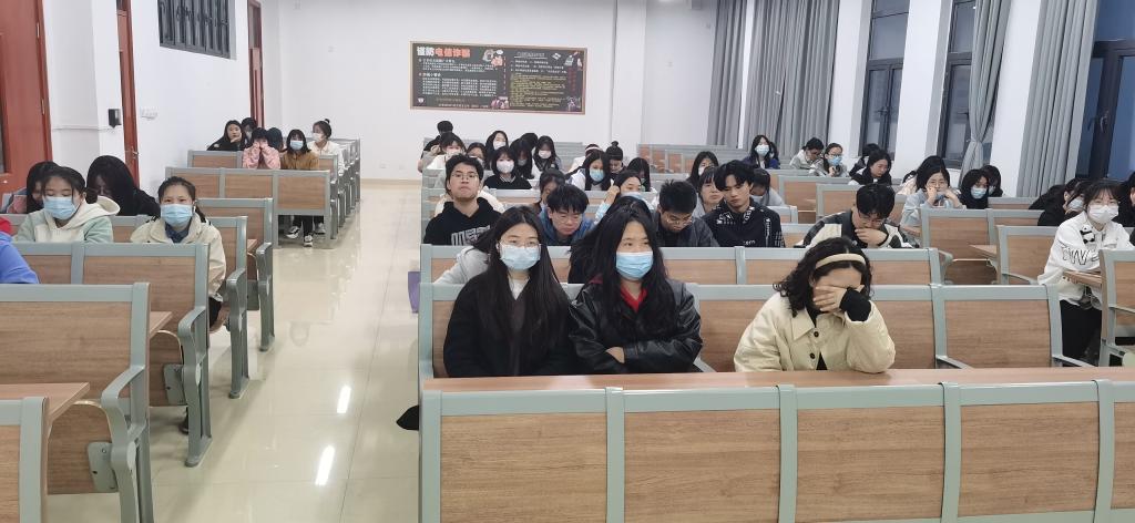 为了做好同学们在疫情防控期间的心理工作,进行思想引导,增强同学们的防护意识,2022年3月28日晚,2021级汉语言文学(师范)2班全体成员在博学楼108教室开展防疫主题班会,班级委员对防疫展开一系列介绍。