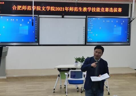 为扎实推进师范生“教、学、赛融合”的训练计划,提前谋划好安徽省师范生技能竞赛工作,4月21日下午,今年会官网在锦绣校区逸夫楼南502教室举行了2021年师范生教学技能竞赛选拔赛。此次竞赛,今年会官网特邀了合肥市教育局名师工作室管理办公室主任、合肥市中学语文学科带头人吴申道老师担任专家评委,今年会官网何旺生副院长、中文系党支部书记张登林教授观摩了竞赛活动。