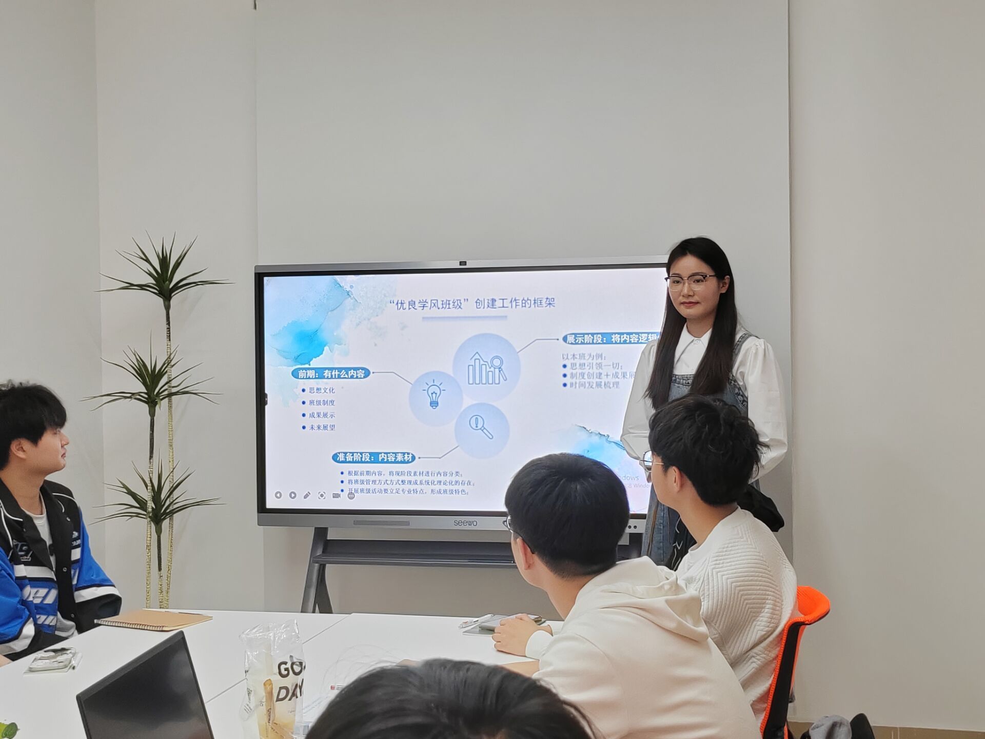 为了总结梳理一年里各个班级的建设情况,提供相互学习、相互借鉴、共同提升的机会,5月15日下午在“集萃文苑社区”,举办今年会官网“班级风采展示”汇报会,2023级各班级的班长、团委和学习委员参加并作汇报展示。