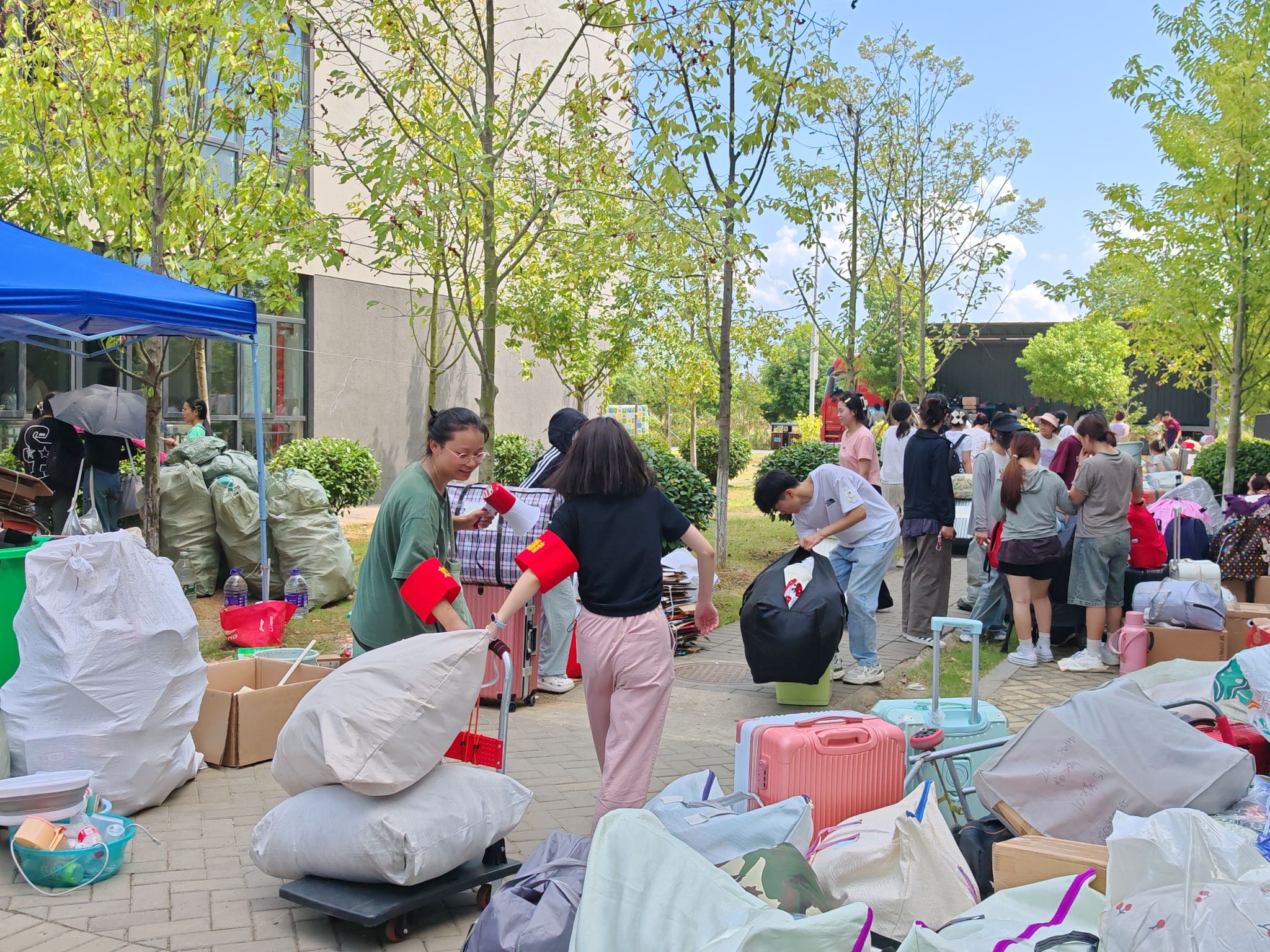 党员先锋、学生干部、青年志愿者冲锋在前,主动接待引导、搬运行李,红色志愿袖章成为搬运现场一道亮丽的风景线;各班级学生互帮互助、携手行动,展现了青年人的蓬勃朝气和友爱精神。两校区搬迁工作秩序井然。为减轻学生上下楼行李搬运压力,学院联系了可升降作业的工程车辆,负责搬运行李下楼、上楼,获得了学生的一致好评。