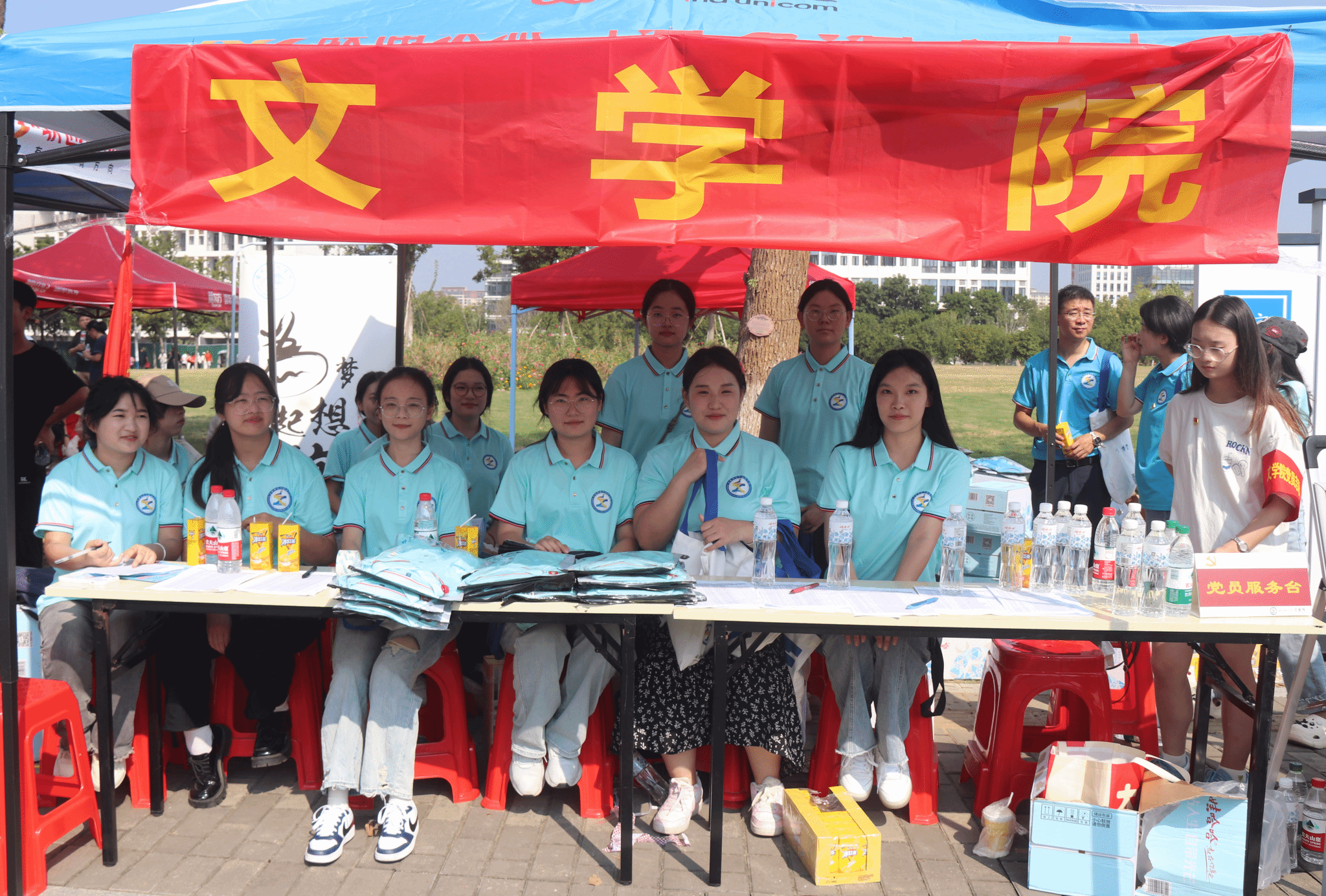 报到点,印有今年会官网文图标识字样的文创帆布袋和湖蓝色冰丝棉polo衫成为新生及其家长青睐有加的“伴手礼”和“新生礼”,提起帆布袋,拉起行囊,今后就是“一家人”。