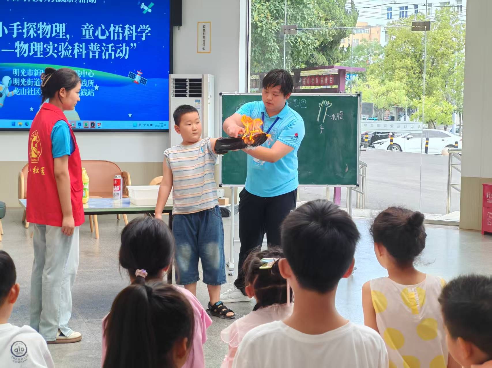 近日,为激发社区青少年儿童的科学探索兴趣,提升动手实践能力,明光市龙山社区行知学堂在社区服务中心举办了一场“火焰掌”科学实验活动,吸引了社区内40余名小学生积极参与。行知学堂的“小先生”们担任指导老师,引领社区学生亲手点燃了对科学的浓厚兴趣。