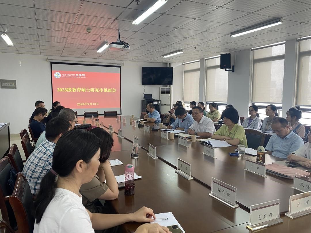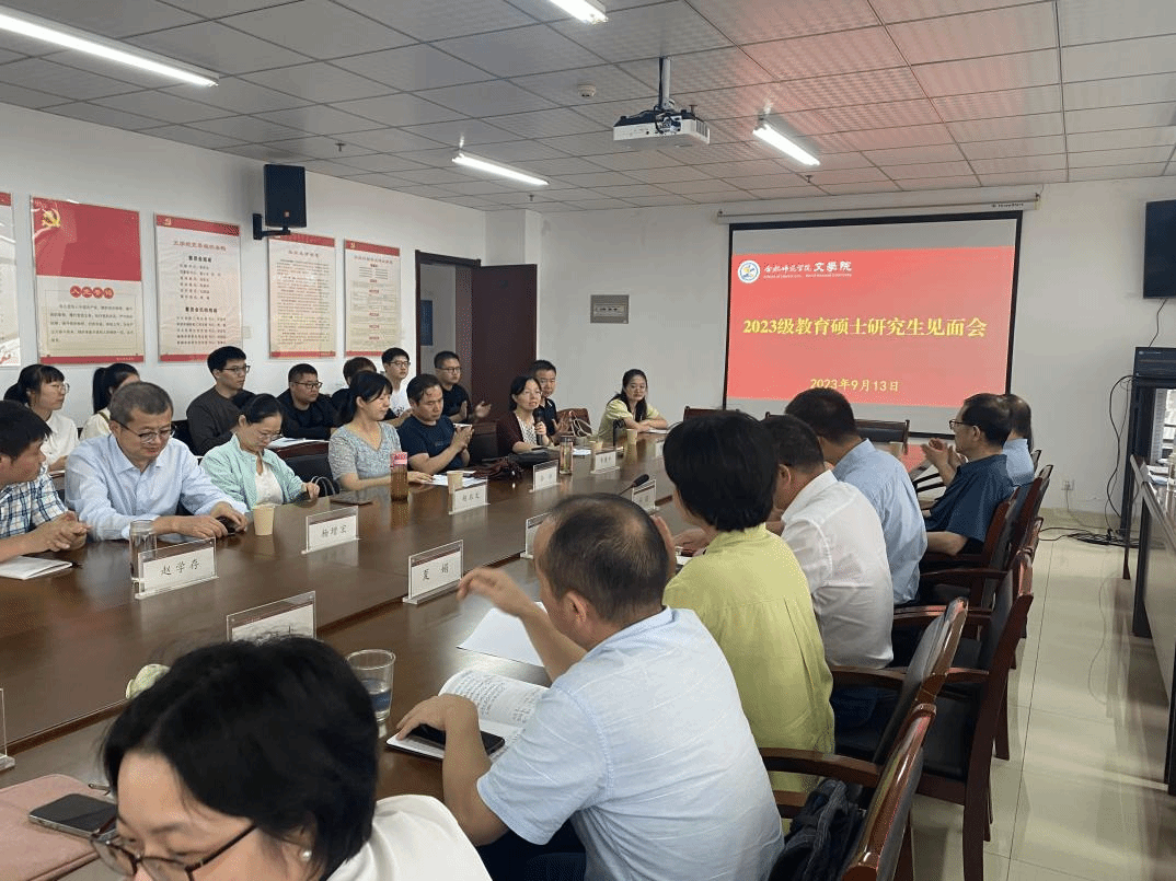 本网讯 金风送爽,桂子飘香。9月13日下午,今年会在锦绣校区行知楼802会议室举行了2023级教育硕士研究生师生见面会。今年会官网党委书记许锃、院长何旺生、党委副书记夏娟、副院长甘松和全体研究生导师、新生班主任、辅导员以及52名研究生新生参加见面会,见面会由许锃主持。