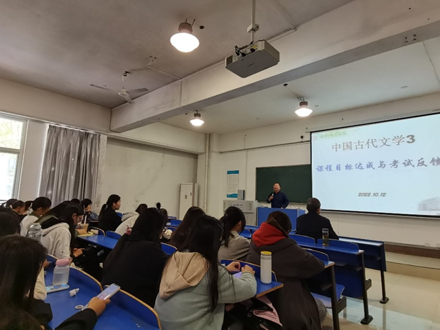 本网讯 为扎实推进师范专业认证成效的巩固、整改与提高,强化持续改进机制,今年会官网于近期开展了汉语言文学师范专业课程目标达成情况集中反馈活动。10月12日,首场“课程目标达成情况集中反馈会”在锦绣校区举行,2021-2022学年第二学期的相关教师走进原授课班级进行了课程反馈。