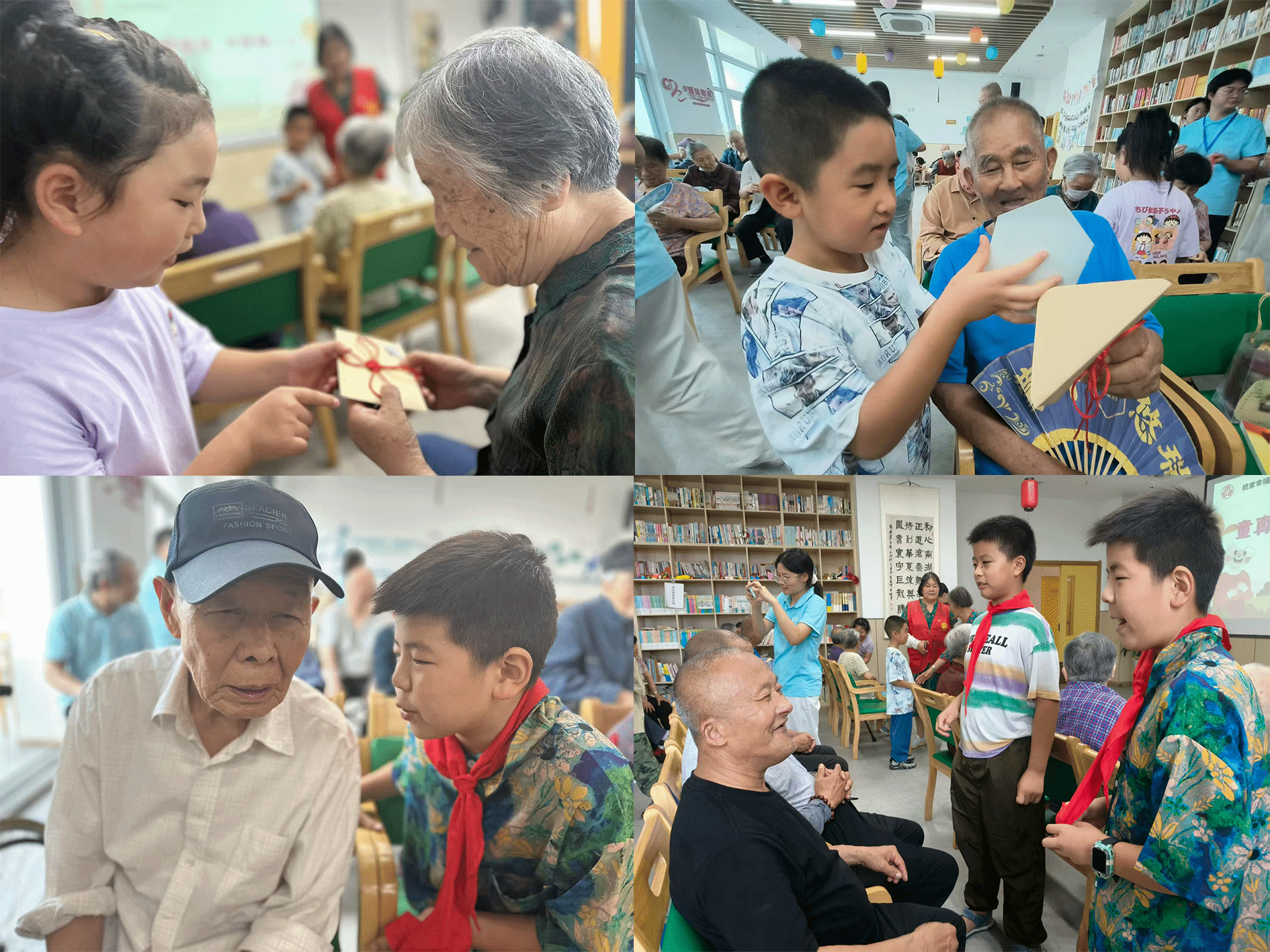 “百善孝为先”,尊老敬老爱老是中华民族的传统美德。7月12日,迎淮社区行知学堂11名小学员在“小先生”团队与社区工作人员的带领下,走进与社区毗邻的天与养老院,开展“童真伴银发 关爱暖人心”主题敬老实践活动。活动通过生活照料、文艺演出、心灵对话等形式,为老人送去温暖与欢乐,生动诠释了新时代青少年尊老敬老的精神风貌。本次活动特别增设“信暖银发”环节,小学员们将手写信件装入精心装饰的信封,每个信封上都缀有孩子们亲手编织的中国结,传递着浓浓敬老情。