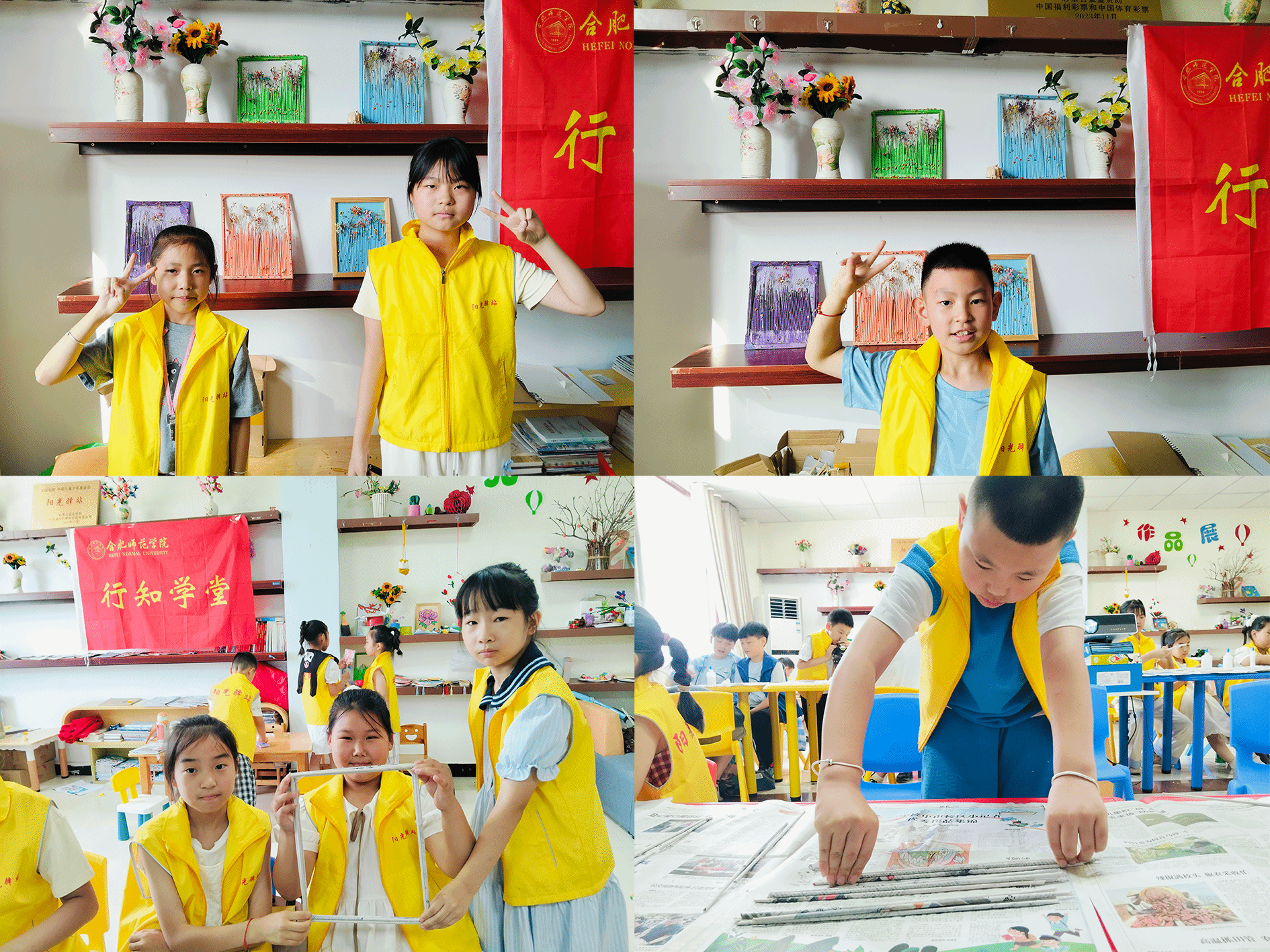 为践行绿色发展理念,提升少年儿童环保意识与动手创造能力,同时弘扬“知行合一”的实践精神,近日,五河行知学堂在蚌埠市五河县吴家嘴街道社区服务中心,带着社区20余名小学员举办了“变废为宝 艺塑生活”主题手工活动。活动聚焦废旧纸张的创意再生,带着小学员化身“小小花艺师”,亲手将废弃纸张“点石成金”,制作成独具匠心的装饰画框,并巧妙搭配干花,创作出充满自然气息与艺术美感的环保作品。