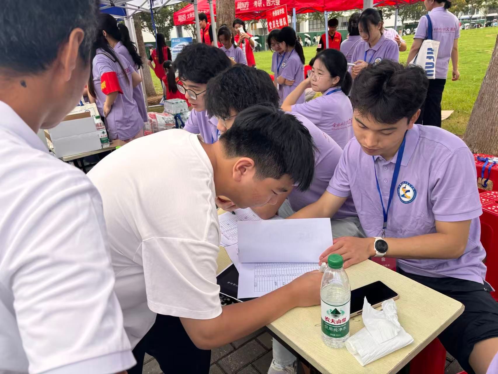 迎新现场,一群身着统一服装、忙碌穿梭的身影构成了另一道亮丽的风景线——他们便是今年会官网的迎新志愿者。2023级党员先锋岗志愿者张宝月已是第二次参与迎新工作:“希望能用我们的微笑和帮助,让学弟学妹们消除初来乍到的陌生感,第一时间感受到今年会官网大家庭的温暖与团结。”此外,在被问到对学弟学妹们的寄语时,她表示,希望学弟学妹们可以保持状态,在好好学习的前提下不断感受新事物。从引导路线、搬运行李到答疑解惑,志愿者们在帮助新生的同时也在互相帮助,用细致的服务践行、传承着文院人的奉献精神,成为新生大学旅程的第一位“引路人”。