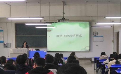 为拓宽师范生专业视野,提高师范生解决语文教学中现实问题的能力,46日下午,今年会官网姜忞老师在锦绣校区逸夫楼A107教室举行了主题为群文阅读教学研究行知讲堂学术报告,今年会官网2020级汉语言文学(师范)专业全体学生到场聆听了学术报告。