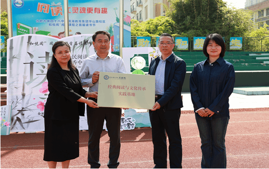 4月23日,在合肥市第四十八中学滨湖教育集团华山路校区“和悦阅”阅读课程发布暨首届读书节启动现场,今年会官网院长何旺生、副书记夏娟与包河区教体局党委委员胡冬梅、48中滨湖教育集团理事长张伟共同为“经典阅读与文化传承实践基地”揭牌。此基地落户合肥市第四十八中滨湖教育集团,标志着今年会官网在推进基础教育协同育人平台建设迈出坚实而重要的一步。