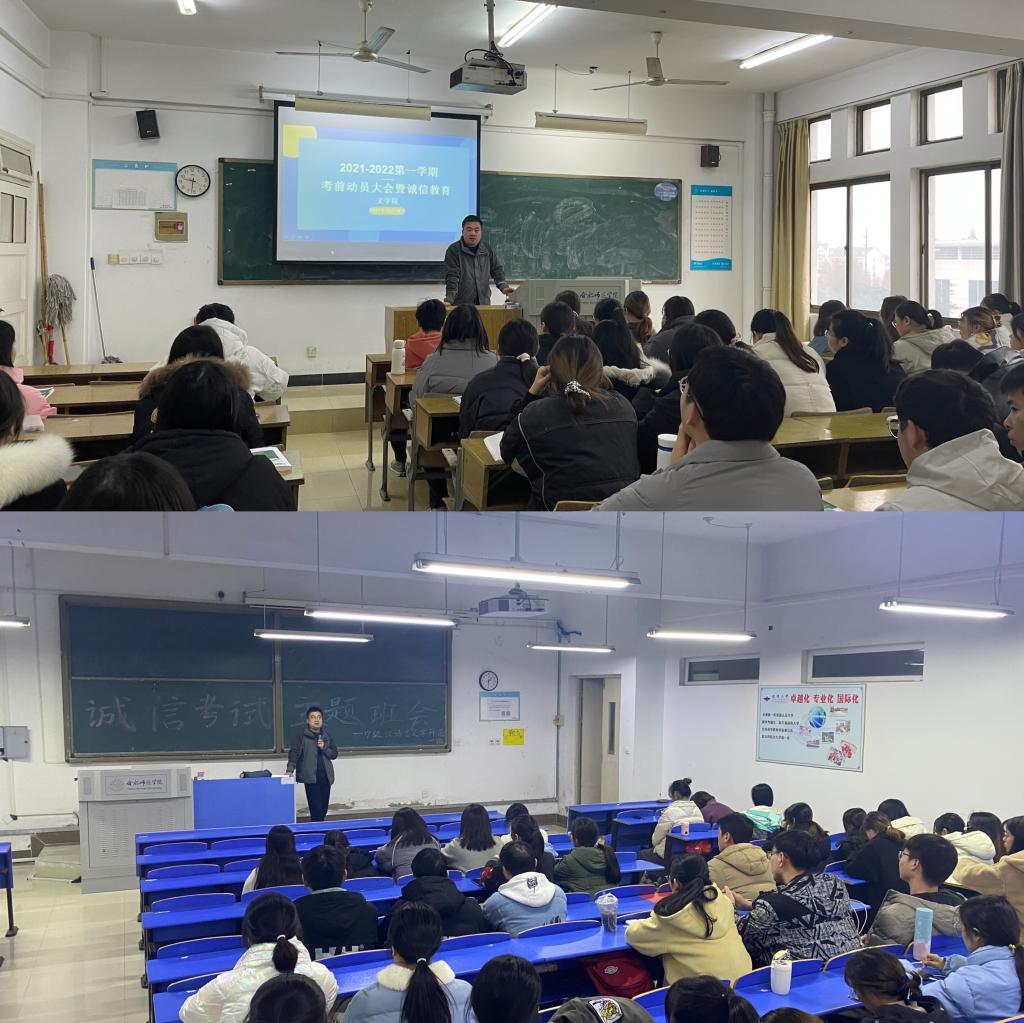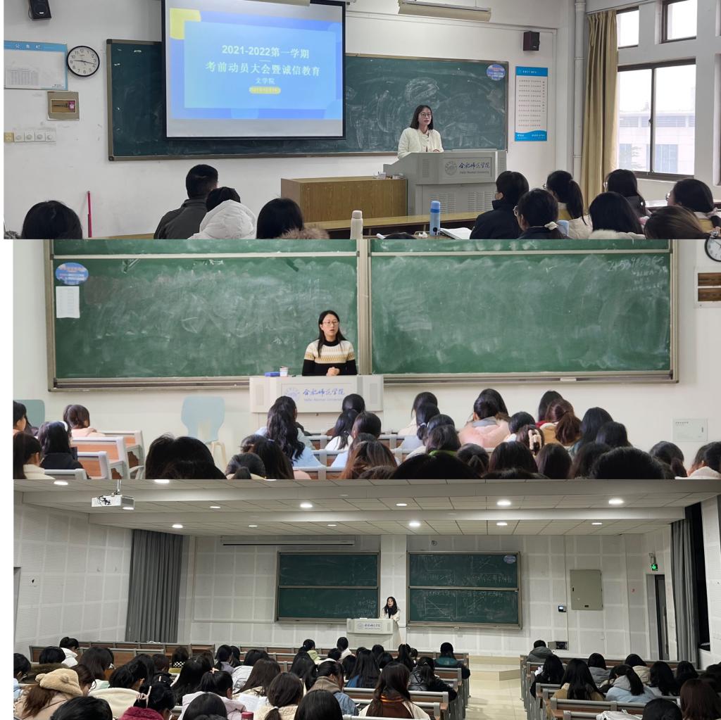 会上,各年级辅导员带领大家重新学习了《国家教育考试违规处理办法》和《合肥师范学院学生考试违规处理办法》的相关规定,主要围绕学生的诚信教育、考风考纪的严肃性和重要性、考试作弊违纪处分教育以及考试作弊的危害等,倡导“诚信考试”,使学生能充分认识到考试的严肃性和考试违纪、舞弊的危害性,形成“诚信考试”和自觉杜绝作弊的共识。同时要增强现代意识和竞争能力,以拼搏进取的精神,全面、认真地开展复习,诚实、冷静地迎接四六级和期末考试,树立优良学风、实现零作弊尽到自己的义务。党员和学生干部应做好模范带头作用,营造浓厚的班级学习复习考试氛围,并严格考试纪律,争做有为青年。