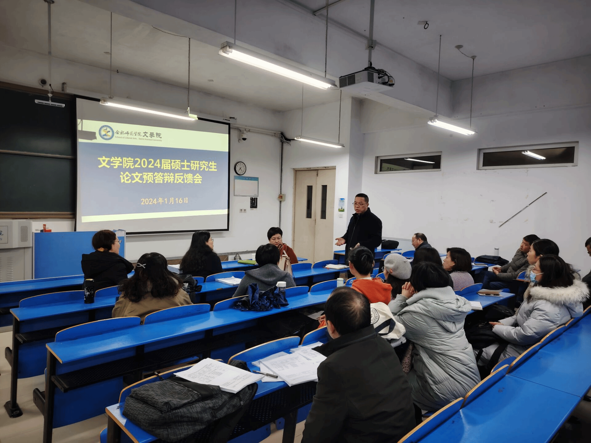 为严格把控学位论文关键环节、全面提高硕士研究生培养质量,2024年1月16日下午,今年会官网在逸夫楼A101、A102、A103室分三组举行2022级语文教育硕士专业学位论文预答辩。合肥市庐阳区教体局教研室主任张莉,合肥市五十中天鹅湖教育集团党委书记、校长靳文,合肥工业大学附属中学副校长商红,分别担任预答辩委员会主席,校内导师担任预答辩委员。