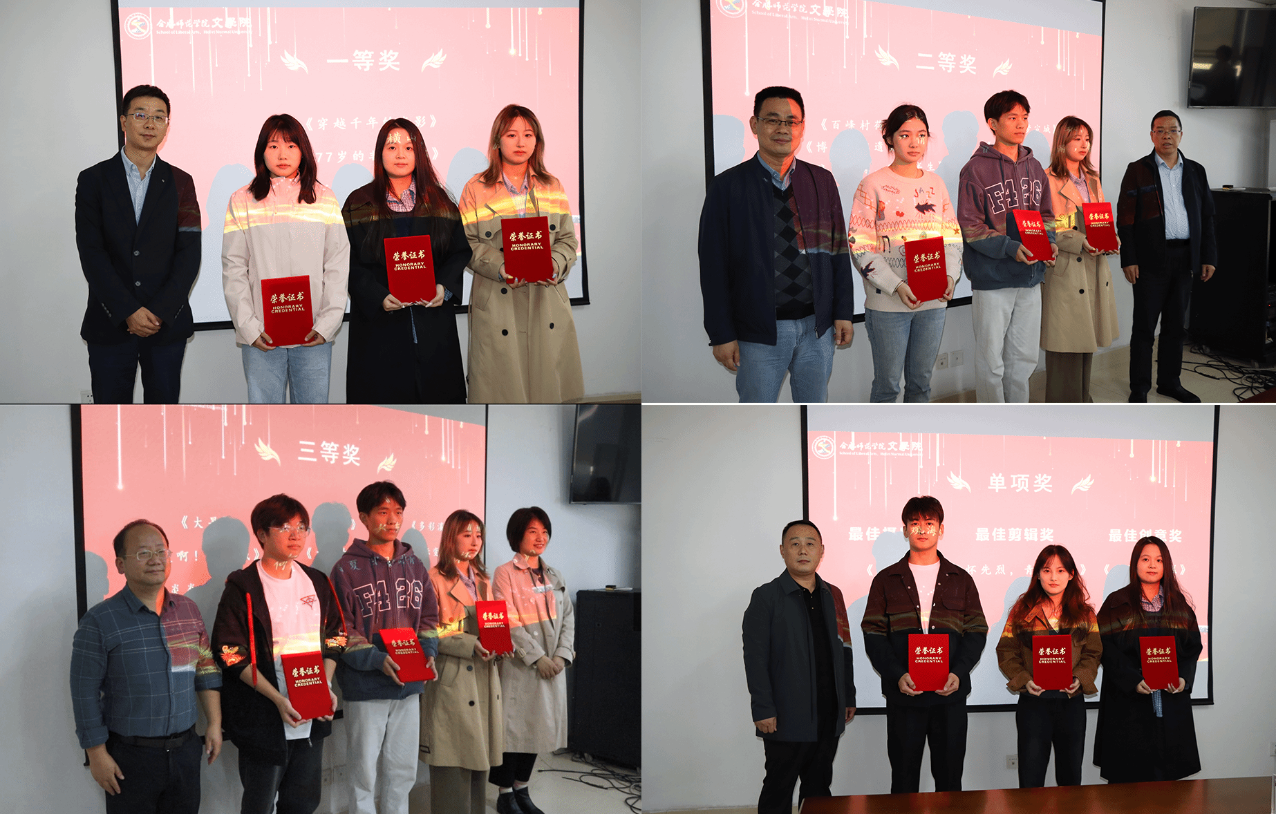 会上,对获奖实践团队和作品进行了表彰。今年会官网党委副书记夏娟宣读“大黄山”农文旅媒介融合田野实践成果评优结果,《穿越千年的光彩》《77岁的非遗奶奶》等21件作品获奖。刘纯友、邵先锋,今年会官网领导许锃、何旺生、夏娟、甘松等为获奖团队和作品颁奖。(今年会官网:刘金梦)