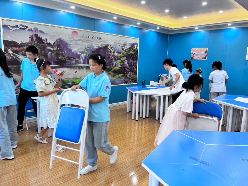 教室桌椅是拼接式的,为了锻炼孩子们的创造力,“小先生”们决定让孩子们自行组合桌椅,搭配颜色。孩子们配合十分默契,短短几十分钟,教室已经被打扫干净,桌椅全部排列整齐。