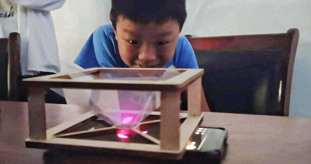 科学小实验由电院学生鲍瑞和朱一诚讲授。首先,他们带来了永动仪,为学员们介绍“永动”的原理和现象。其次,他们进行水吸乒乓球和书本摩擦的实验,丰富了学员们关于压强和摩擦力方面的知识。随后,他们拿出了自制的3D投影仪,放映奇幻的幻灯片。最后,他们带领学员们用显微镜观察鸡蛋壳、树叶、石头等事物,领略不一样的世界。