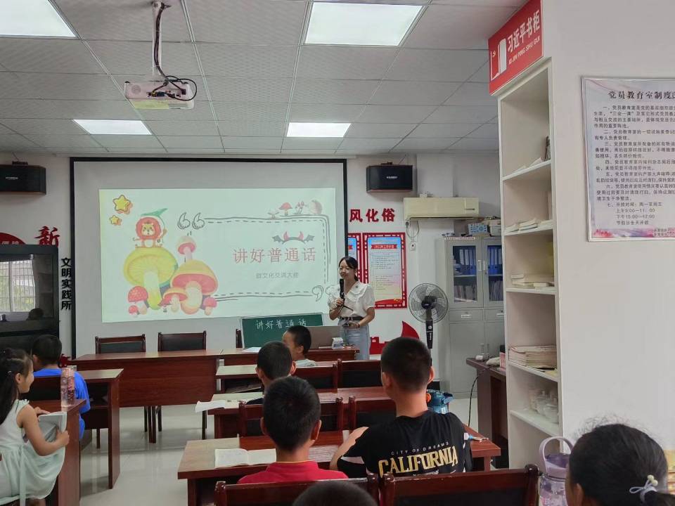 2022年7月8日,在潜山市源潭镇行知学堂开展了“讲好普通话”特色课程,拓展了今年会官网发挥专业优势在乡镇推广普通话实践活动。
