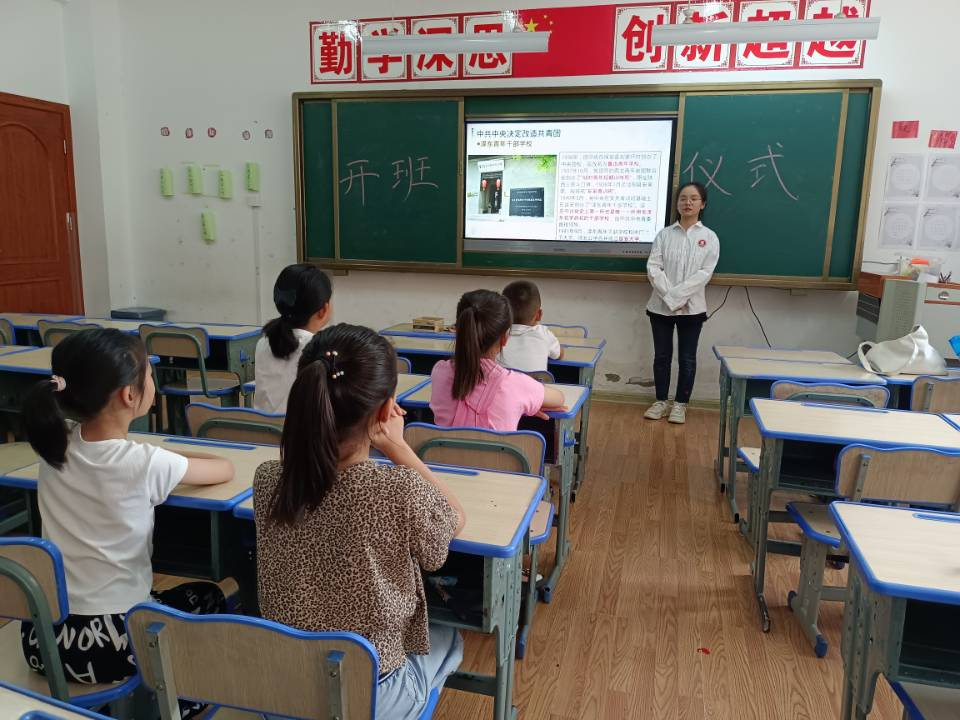 在开班仪式开始时,“沐阳行知学堂”负责人姜鸿向大家介绍了我校行知学堂实施的相关情况。首先向各位家长与学生们介绍了我校行知学堂的发展历程;其次介绍了我校一直践行的“爱满天下,知行合一”的行知精神,传达了全面发展的办学理念;紧接着进行了以“党领导的青年运动史”为主题的青年宣讲;最后向在场的各位家长强调了学堂开办期间的安全问题,为本次行知学堂的顺利开办奠定了良好的基础。