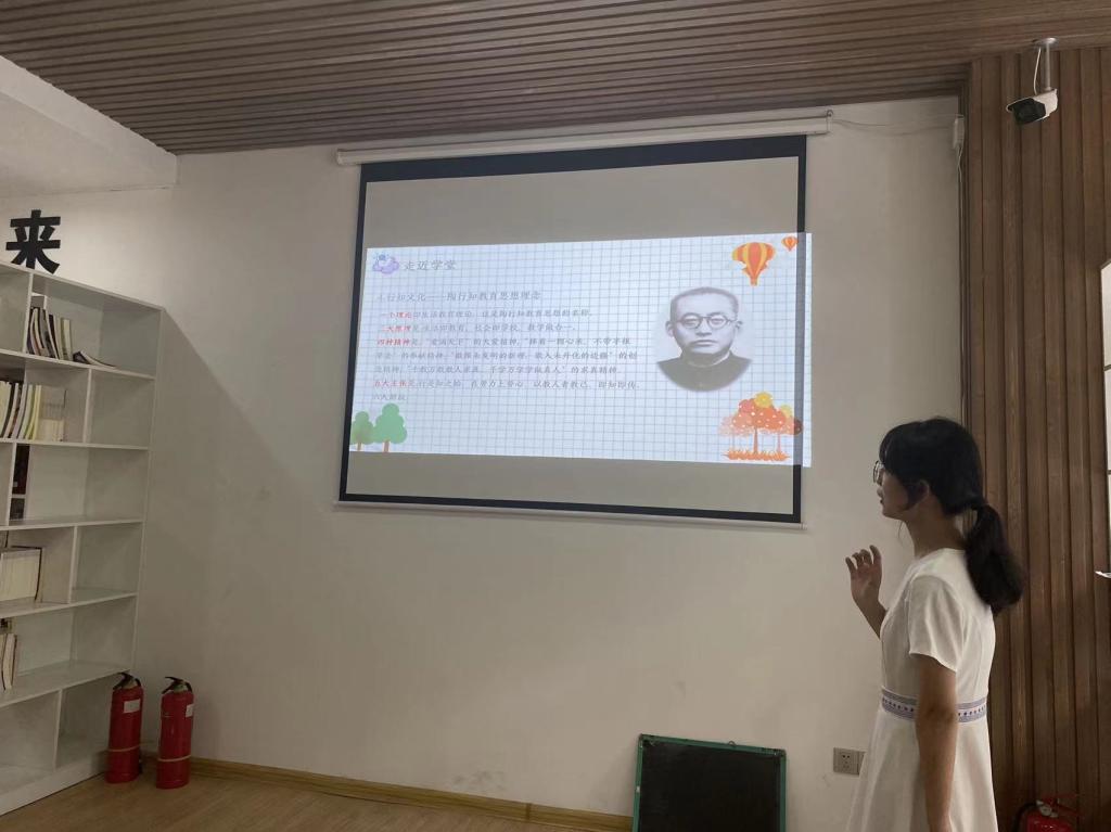 此次开班仪式是由沐巢学堂的领队小先生周迎欣主持的。首先,她向全体成员和社区负责人介绍了我院行知学堂的概况、起源、办学宗旨和行知文化的相关内容,让小学员对我们的学堂有了初步了解。