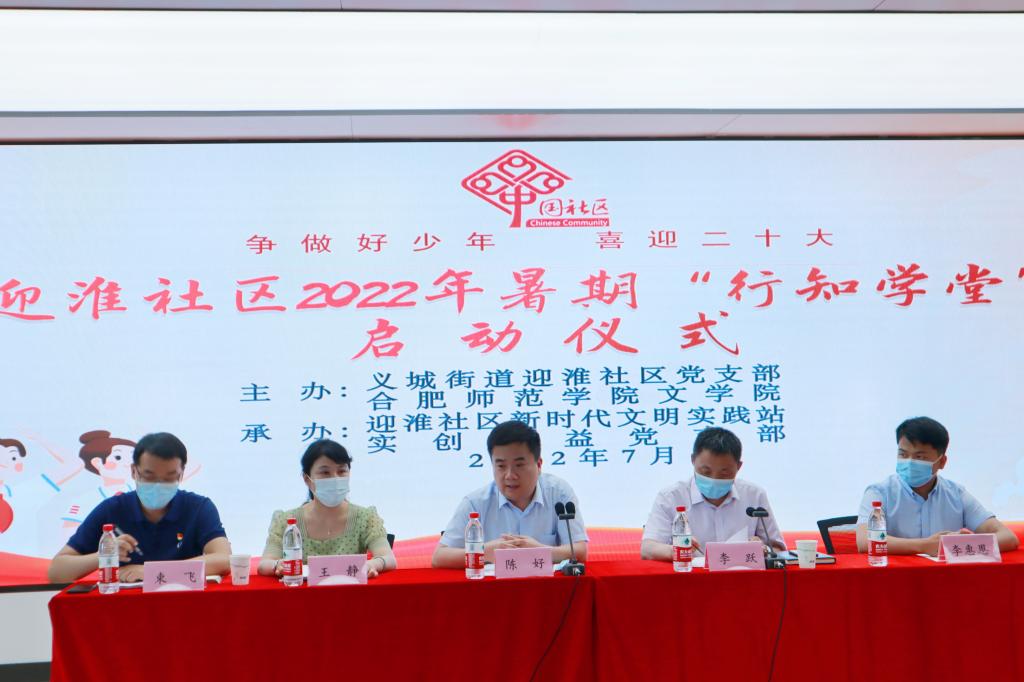 “七一迎淮开新程”。义城街道迎淮社区与我院积极开展合作,建立迎淮社区2022年暑期‘行知学堂’,开班仪式也在建党101周年之际正式开拉开帷幕。今年会党委副书记陈好致辞时,对我们的“小先生”深入细致的提出了工作上的建议和希望:“要尽快完成各项准备工作,尽快完成角色的转变,在学校是在校大学生,到了社区就是“小先生”了,各位同学要担当起“小先生”的使命,不忘“行知学堂”的初心,不辜负学校和迎淮社区的期待。”义城街道办事处副主任在致辞中充分肯定了我校“行知学堂”这一志愿服务品牌项目,希望行知学堂的“小先生”在此次暑期实践中锻炼成长,社区的孩子们能够学有所获,并且希望在未来能够与我院在党建、教育、文化等方面开展各种教学合作,实现共创、共建、共促。