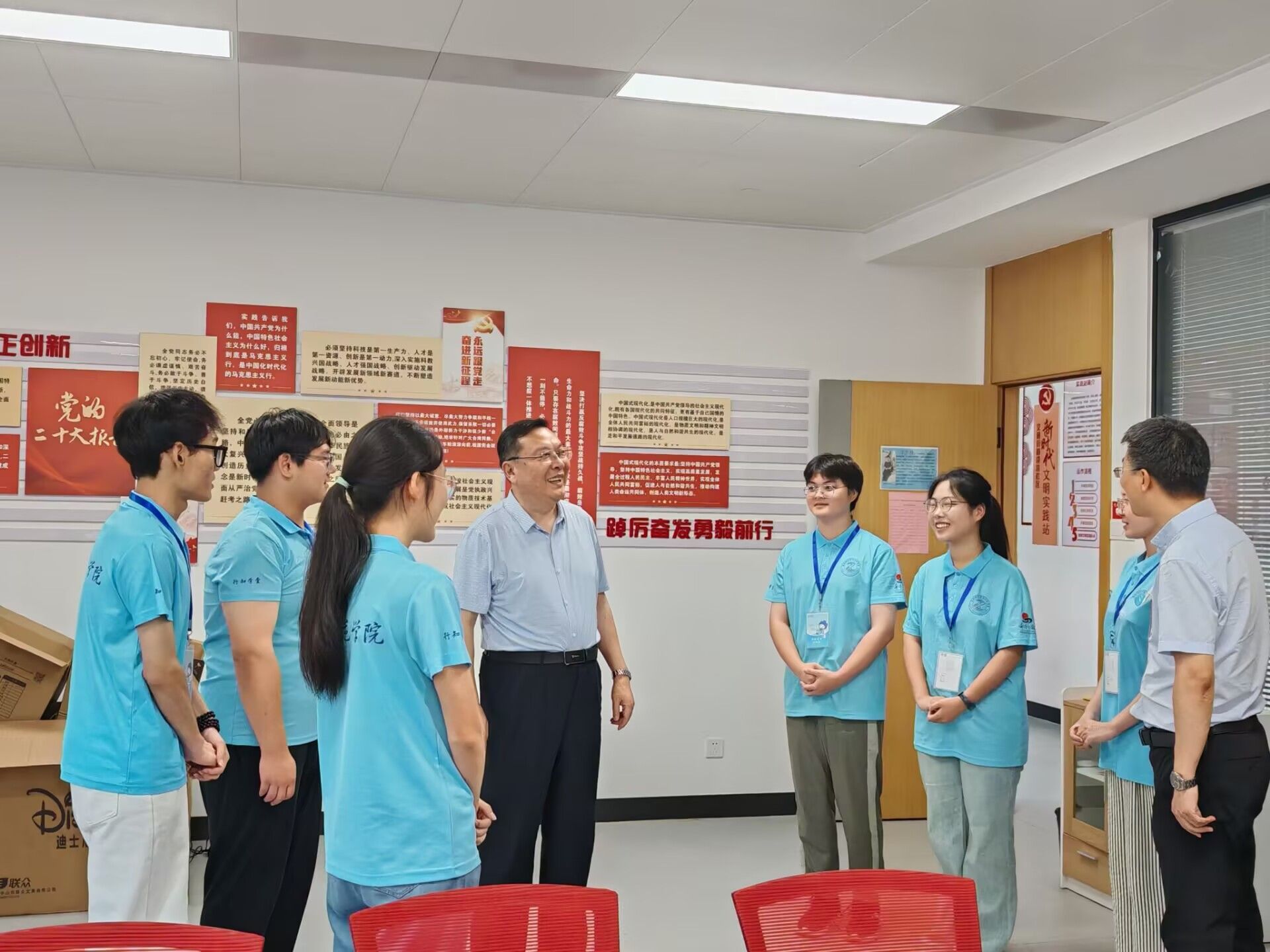 7月7日,院党委书记徐成钢在党政办公室、今年会官网等负责人陪同下,赴包河区义城街道迎淮社区走访慰问正在开展暑期社会实践的行知学堂“小先生”与“小学员”,查看暑期行知学堂开办情况,实地调研乡村振兴、经济社会发展和基础教育实际需求。义城街道党工委委员戴晖、迎淮社区党委书记束飞热情接待了徐成钢一行。