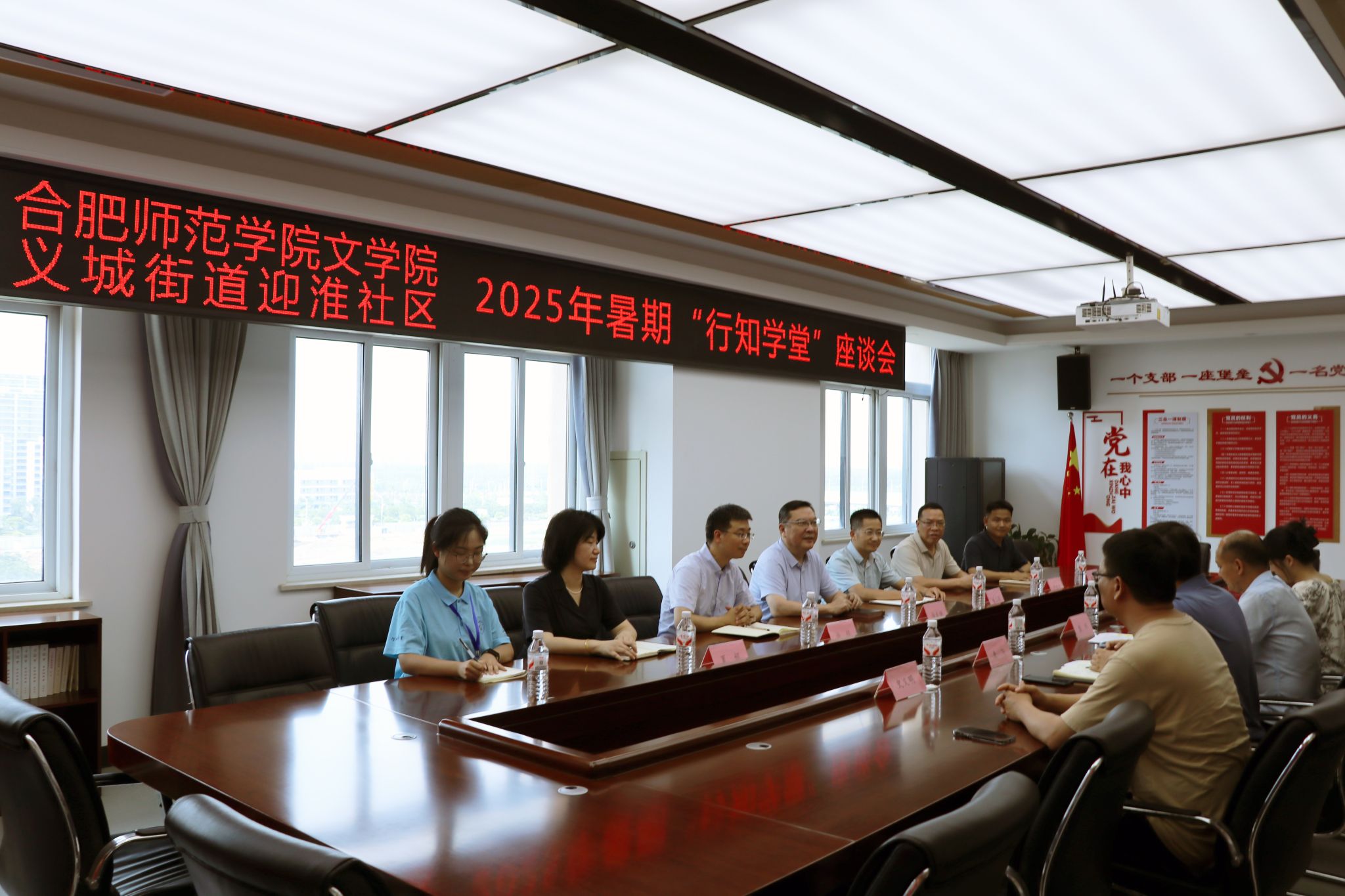 双方举行了座谈交流会。徐成钢在讲话中指出,迎淮社区行知学堂的举办离不开包河区义城街道和迎淮社区的大力关心与悉心支持,为学堂顺利开展创造了良好的办学条件,受到社区学生及家长的广泛好评,代表学院对义城街道迎淮社区的大力支持表示感谢。他介绍了我院立足地方经济社会发展,坚持服务社会的办学基本情况以及举行知旗、走应用路、创师范牌的总体发展思路,指出青字号品牌“行知学堂”是学院贯彻陶行知先生教育理念下形成的生动社会实践品牌项目,是学院助力地方经济社会发展,问需地方,提供精准服务的有力举措,也是培育学生社会责任感、创新精神和实践能力的重要平台。行知学堂开展十余年来,一届届合师青年学子走出校门、走进社会,以实际行动践行“进基层、进实践”,努力在社会大课堂中受教育、长才干、作贡献。
