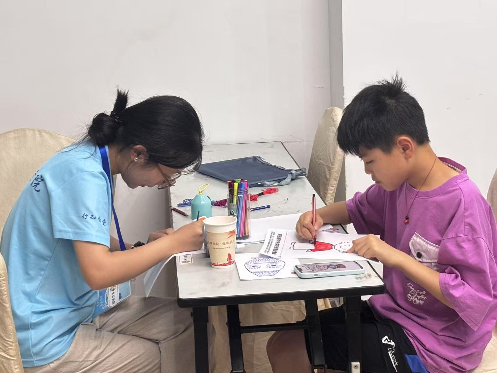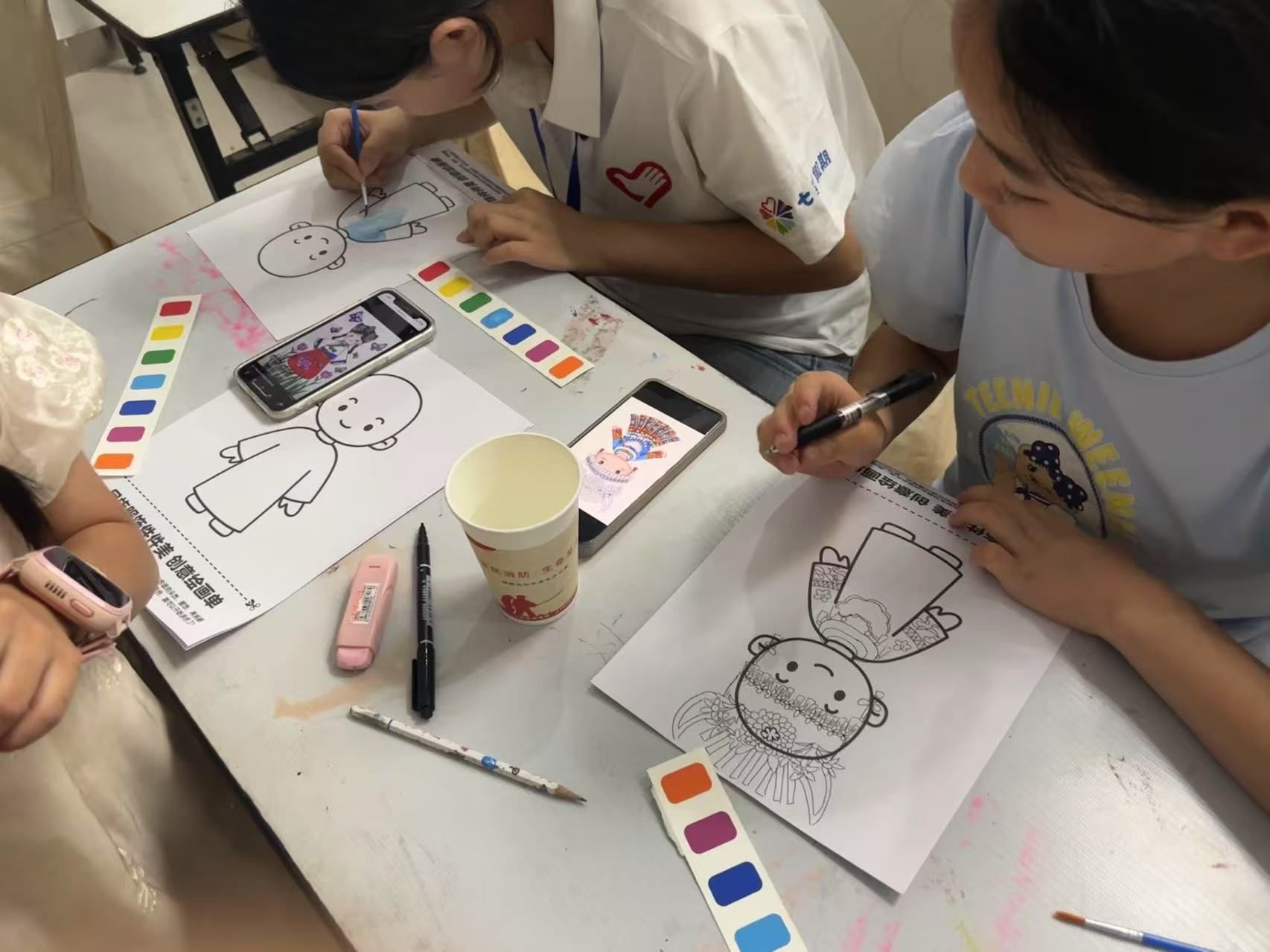 问答环节的热情未消,“小先生”们便取出早已备好的画纸、水彩与彩笔。“现在,就请大家当一回小小设计师,把你心中最美的民族服饰画出来吧!”孙一凡的话音刚落,孩子们便迫不及待地投入创作。