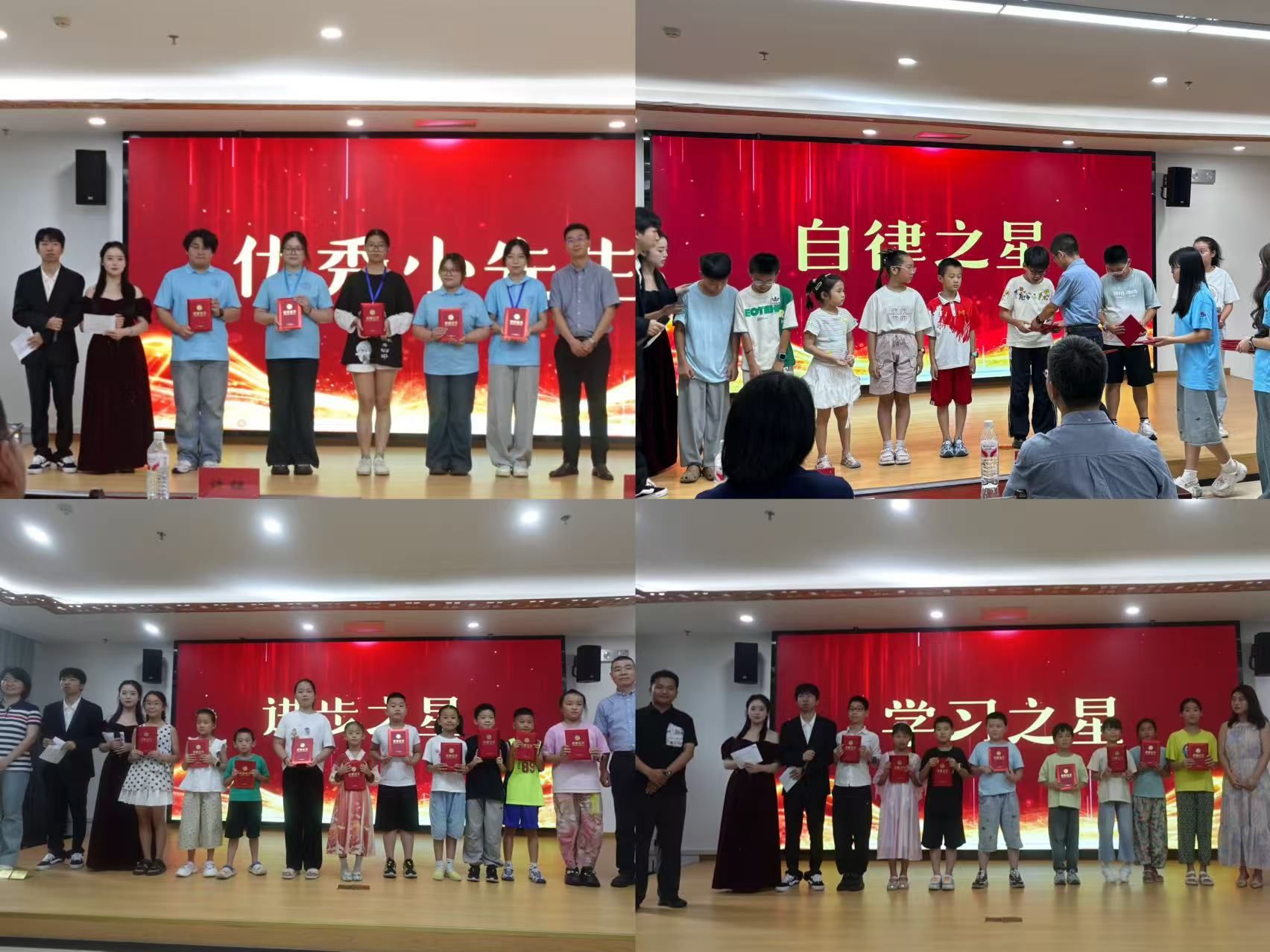 活动现场,还颁发了“学习之星”“进步之星”“自律之星”等小学员奖项和“优秀小先生”奖项。许锃、夏娟、卢钟毓、刘伟义、李惠恩为获奖小先生和小学员颁奖。