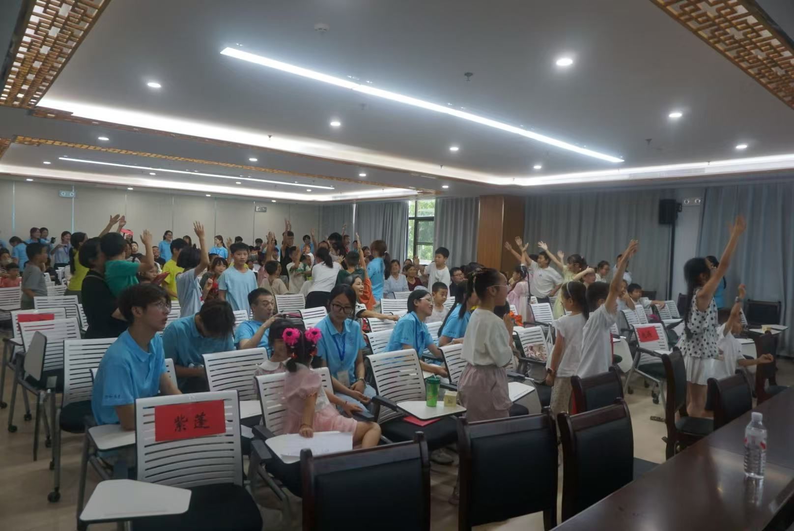 汇报演出环节,成为孩子们展示成长的绚丽舞台。小演员们清澈的歌声交织回荡,朗诵时身姿挺拔、语气铿锵,明快的节奏点燃了全场热情。活动还设置了知识竞答环节,题目源自“小先生”们授课的核心内容,涵盖语文诗词、数学运算、英语对话、防灾自救常识及“两弹一星”历史知识等多个领域,成为检验小学员学习成果的“试金石”。